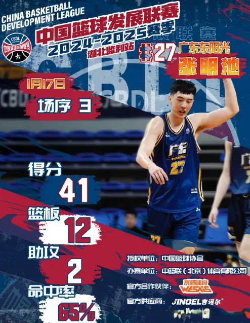 昨天,下放到发展联盟打比赛的张明池爆发,他在对阵天津男篮的比赛中砍下了41分12篮板2助攻,投篮命中率为65%,统治内线!